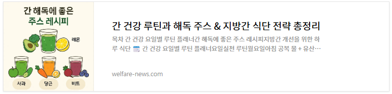 | 간 건강 루틴과 해독 주스 & 지방간 식단 전략 총정리 (1) | 2025.05.01 |